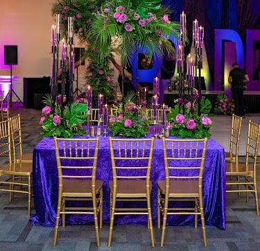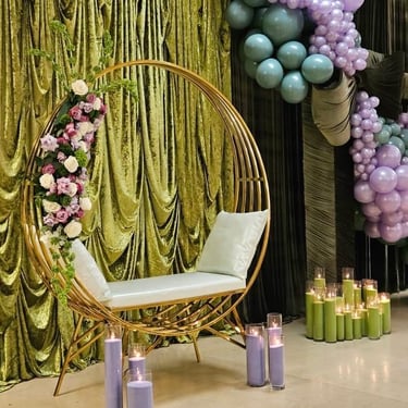 We offer a comprehensive range of event decorating services, including full-service design layout, elegant table settings, bespoke centerpieces, balloon artistry, shimmering walls, floral/grass walls, luxurious throne chairs, sofas, an immersive 360 Photo Booths, Bubble House and more.